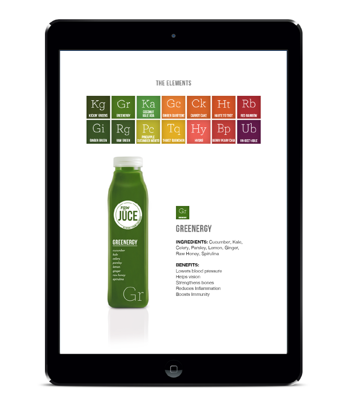 We then applied that branding to individual naming of cold-pressed juices, bottle and acai bowl packaging, as well as collateral, signage, and uniforms.